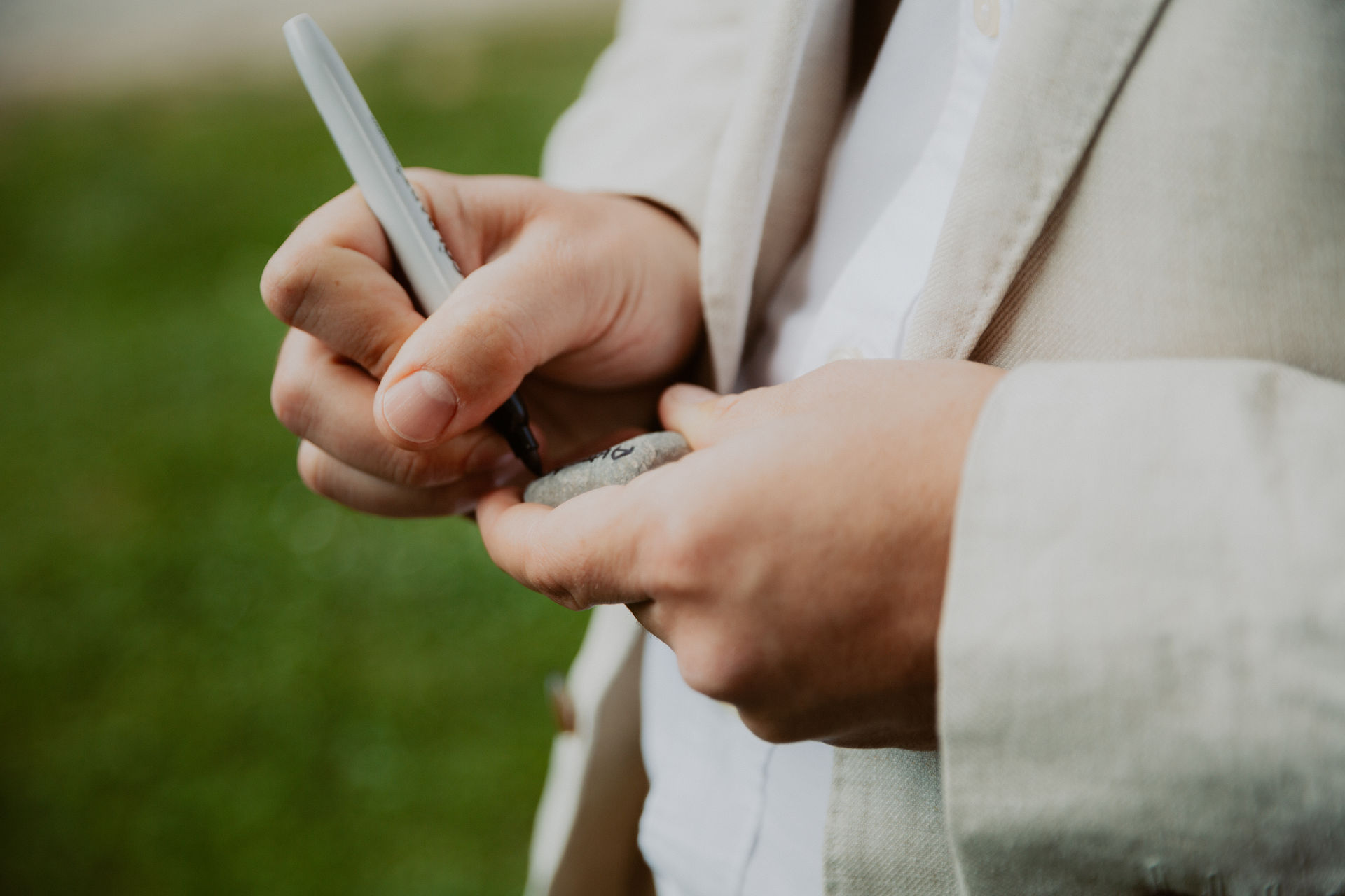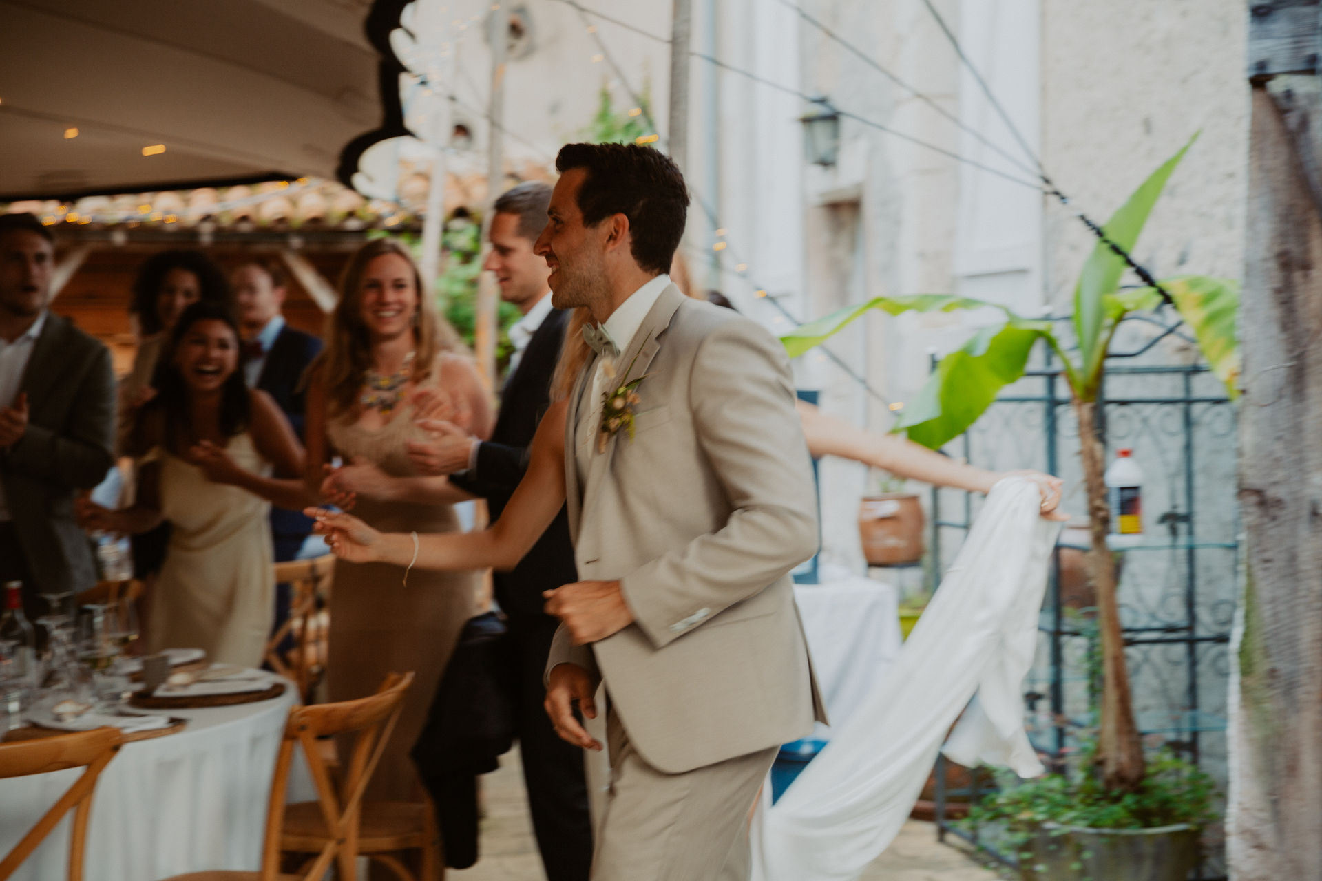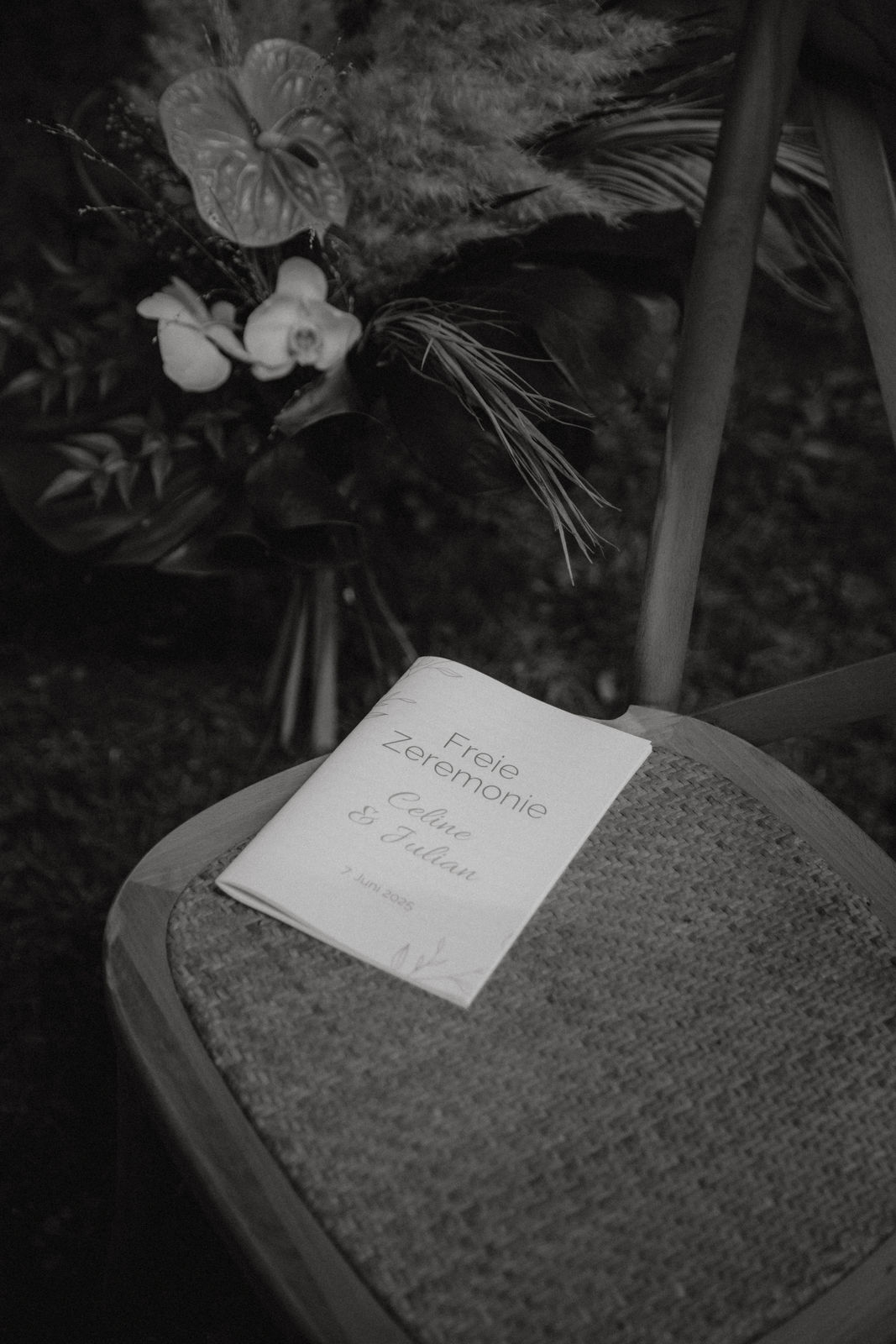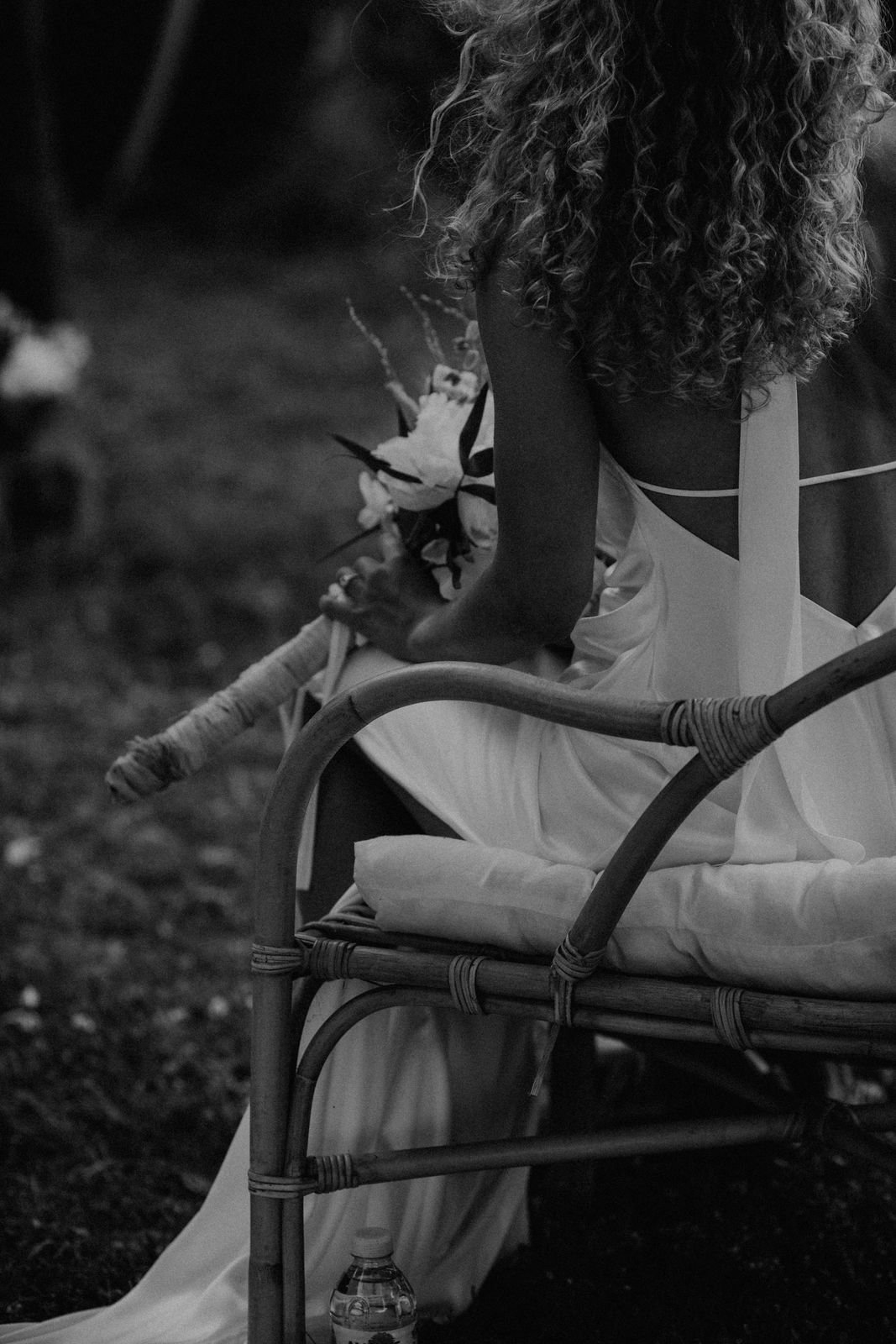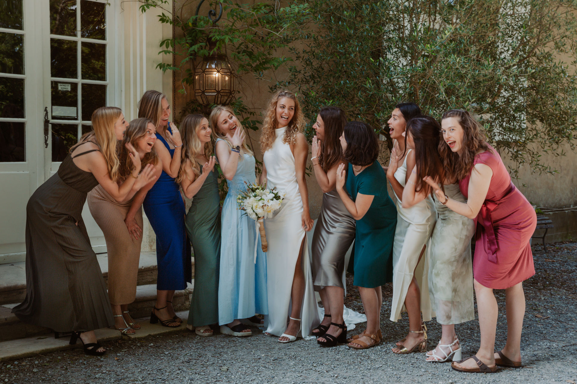 Le point fort de ce mariage fut la cérémonie laïque, organisée directement dans le domaine. Confiée à nos soins, nous avons eu le privilège d’en écrire et d’en animer chaque étape, en anglais, afin de rassembler les familles et amis venus de différents horizons. Ce moment, chargé d’émotion, a retracé l’histoire de Celine et Julian à travers des mots, des rituels et des symboles forts. Une parenthèse authentique, où rires et larmes de joie se sont mêlés dans un décor naturel et inspirant.